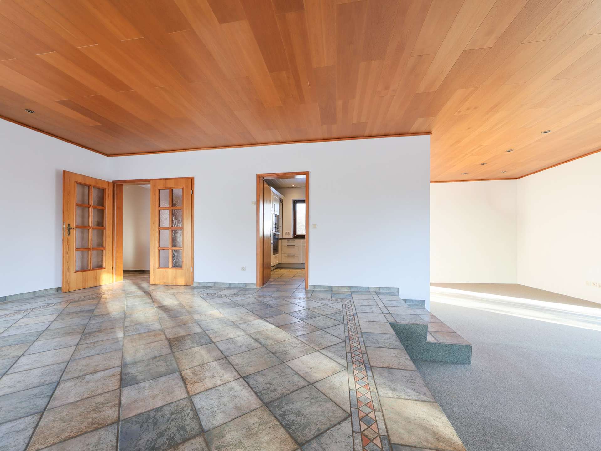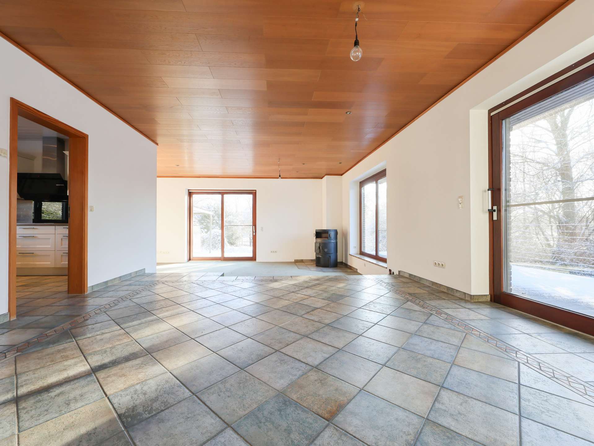 - Großzügiger Wohn-/Essbereich über zwei Ebenen mit Kaminofen